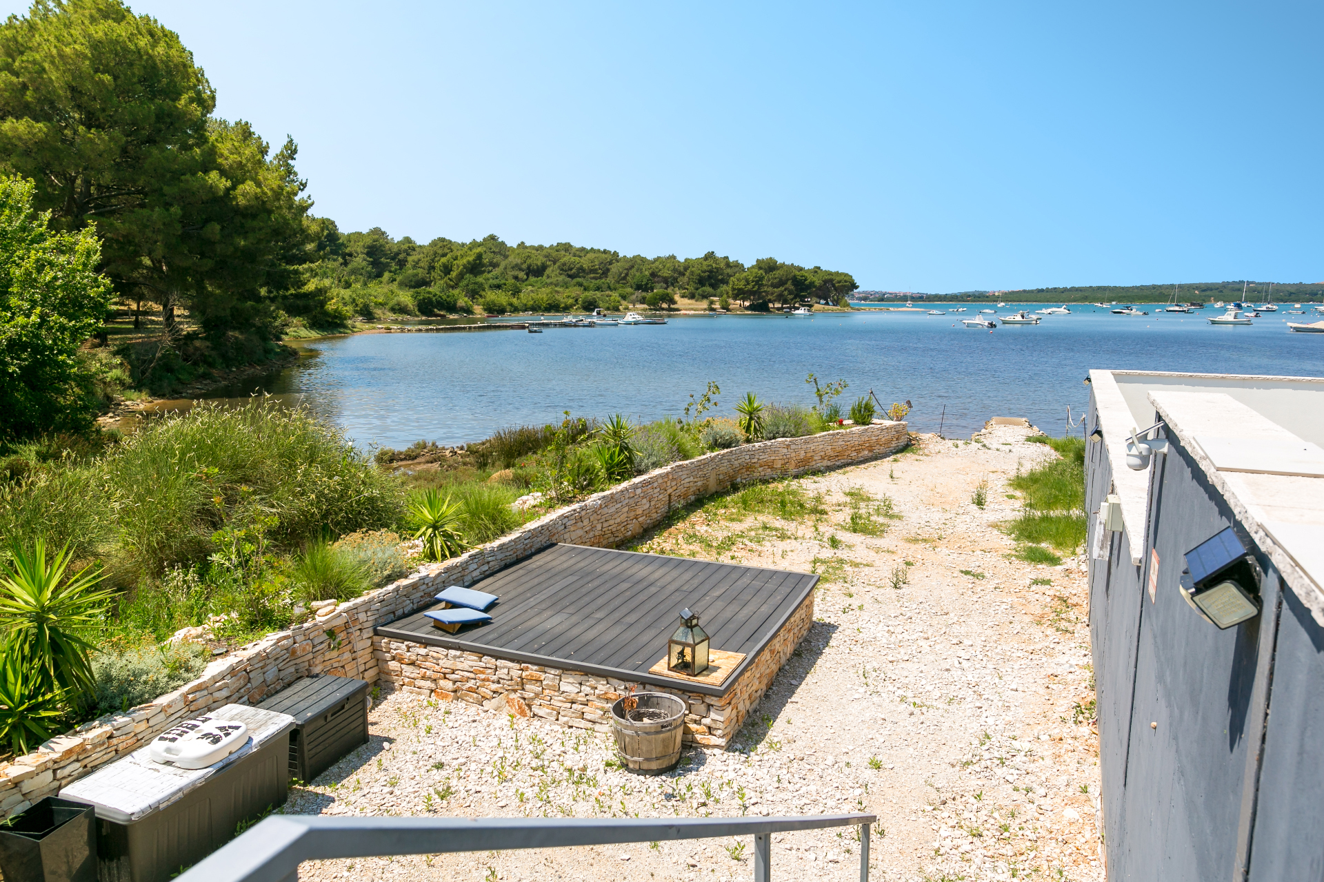Die Lage, direkt an der Halbinsel Vizula, bietet einen herrlichen Meerblick. Zu den wilden Stränden auf Vizula haben Sie ca. 300 Meter, 5 Minuten zu Fuß. Der Sandstrand liegt ca. 800 Meter entfernt – an der Hafenpromenade entlang ist man in ca. 10 Minuten zu Fuß dort.